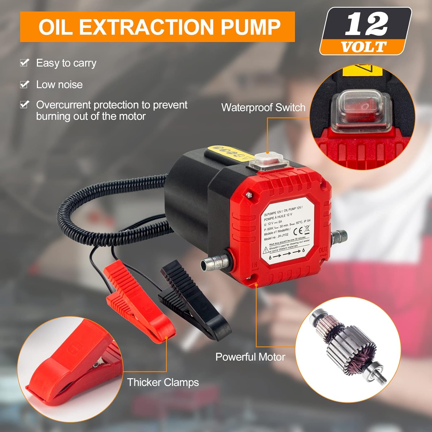 - 【Oil Extractor Pump-Specificaiton】: DC 12V 60W; Current: 5A;Motor Oil (40-60 degrees) Flow Rate: approx. 0.8-1.0L / min,According to the arrow Install the hose, Inlet Hose is thin, Outlet Hose is thick