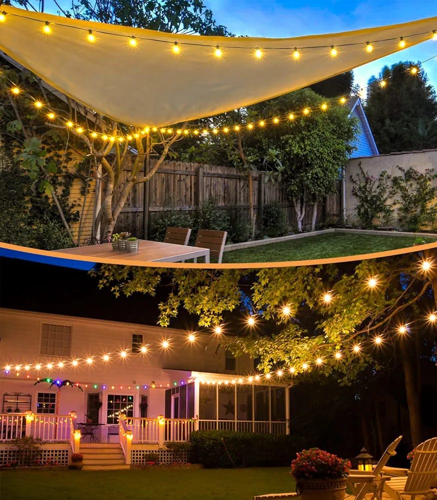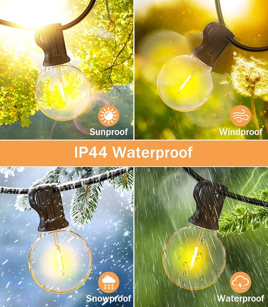 【Perfect Decoration】Each G40 bulb provides 2700K warm light, G40 patio lights are suitable for indoor outdoor lighting decoration. Outdoor garden lights can perfectly decorate your camping, balcony, terrace, garden, porches, pergola, gazebo, wedding, party. And it is a perfect gift for birthdays, Christmas, celebrations and other occasions. At night, you can sit in the yard and enjoy a happy time with family, friends and guests.
