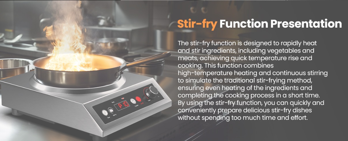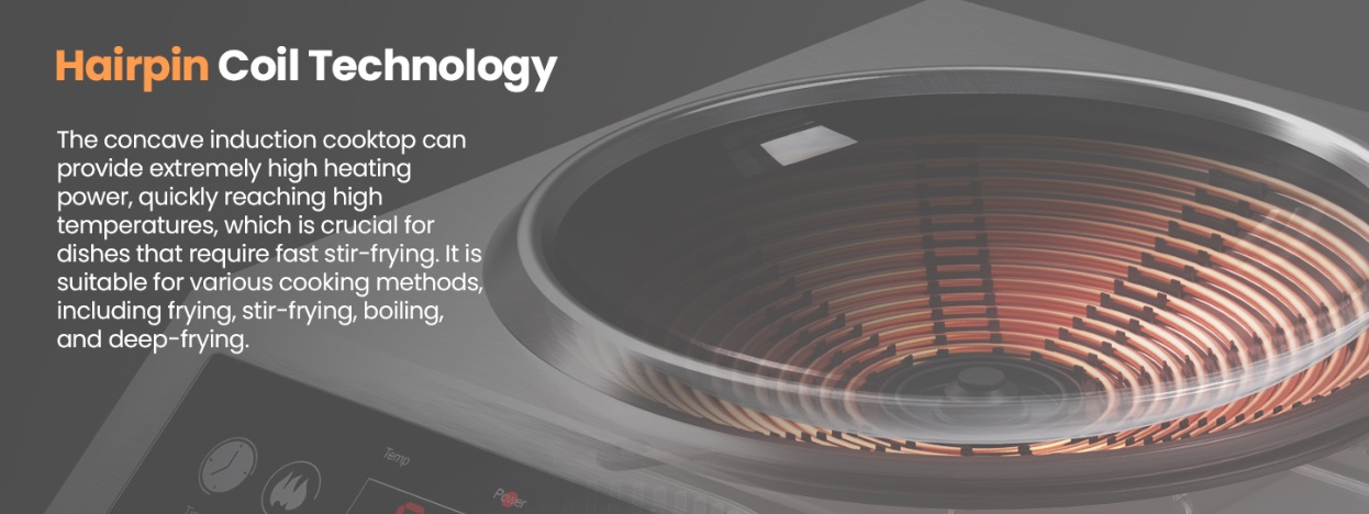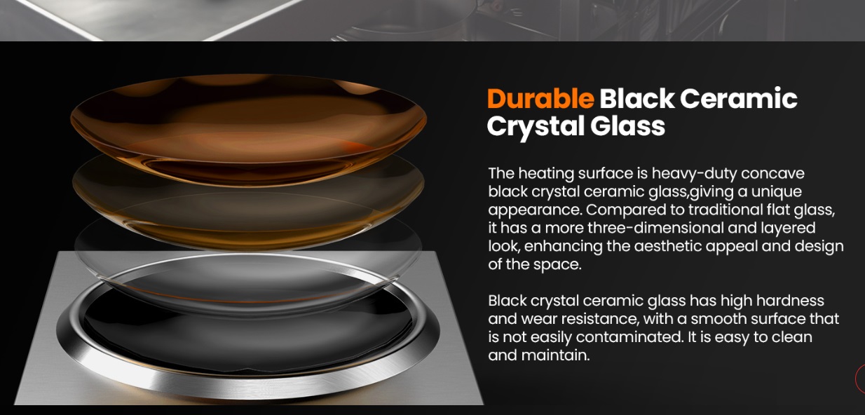 • 🍤【Durable Concave Black Ceramic Crystal Glass】The induction burner of heating surface is heavy-duty concave black crystal ceramic glass,giving a unique appearance.The concave design makes it more appropriate for use with round-bottomed woks, which is important for achieving uniform and rapid heating and cooking. This is especially significant in commercial and home kitchens where food needs to be prepared in large quantities and quickly.