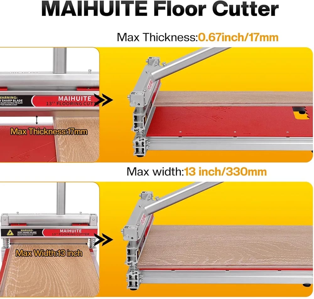 【Sturdy & Stable Design】 Built to last, MAIHUITE laminate flooring cutter features an upgraded, reinforced square panel for superior stability during operation. The high-strength aluminum alloy frame and weighted base work together to resist bending and vibration, providing a solid, secure foundation for every cut. It’s the trusted choice for both DIY homeowners and professional installers working with click-lock .