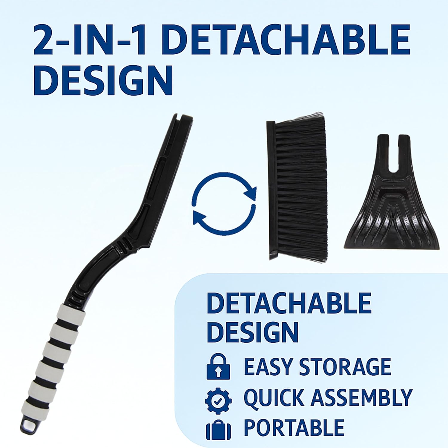 • 🔹 Heavy Duty Winter Tool — Durable reinforced structure designed to remove heavy snow and ice quickly and safely.