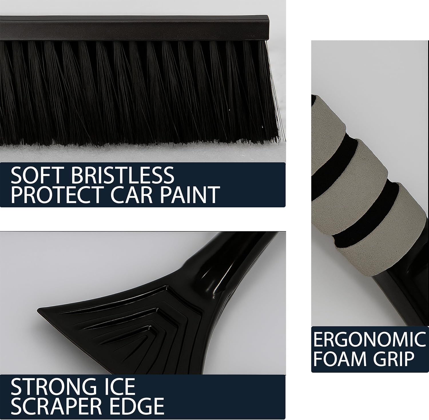 Experience fast and effortless winter car care with the Nevross Snow Brush and Ice Scraper. Designed with a durable reinforced structure, this heavy duty winter tool helps you clear snow and ice quickly without damaging your vehicle. The thick and soft bristle brush sweeps snow efficiently, while the scratch safe ABS ice scraper removes even stubborn ice with ease. The anti slip EVA foam grip provides comfortable handling in cold weather, and its compact lightweight design makes it easy to store in your car. Perfect for cars, trucks, and SUVs, this reliable tool ensures safer winter driving by keeping your windshield and windows clean and clear.