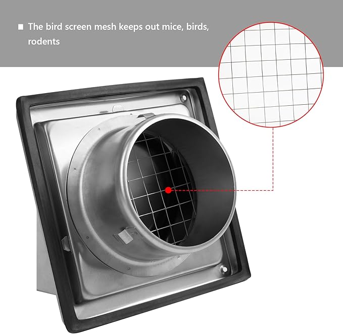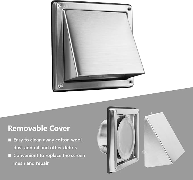 • Product Upgrade: The dryer vent removable cover is easy to clean and replace. The non return flap prevents cold air, rain and noise entering your ventilation system. The air vent cover with the bird screen mesh protects against birds, rats and leaves