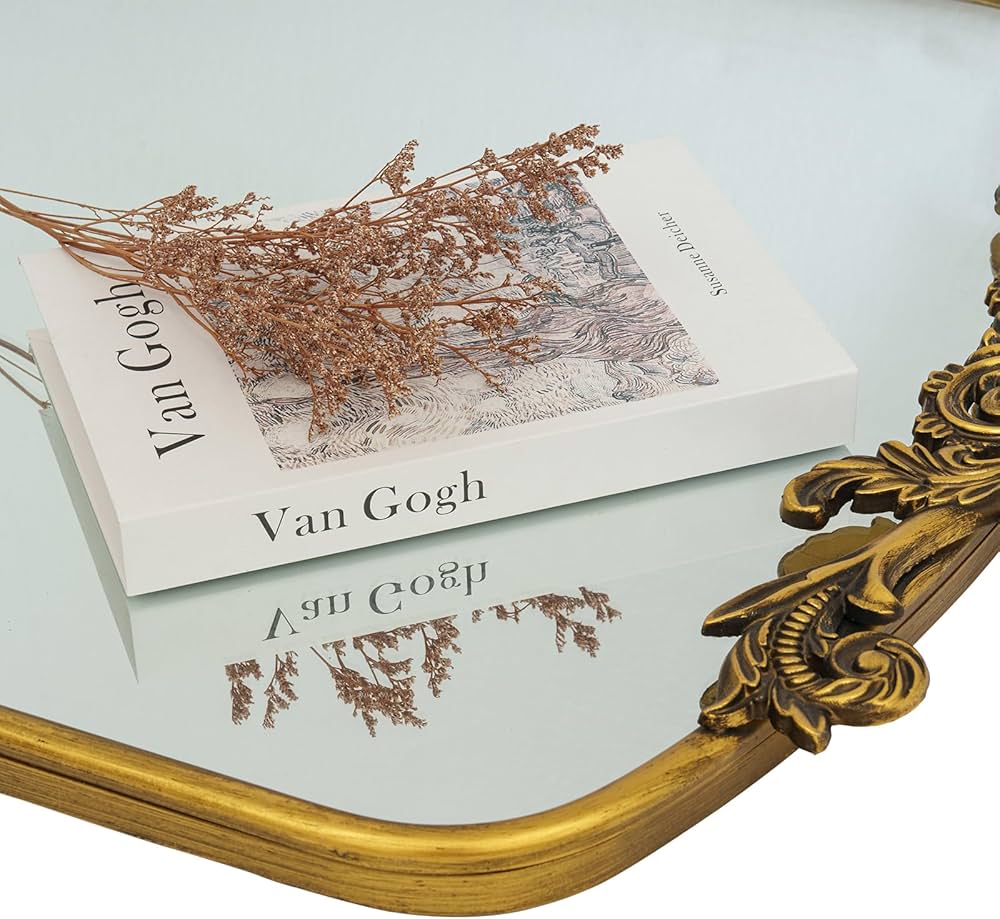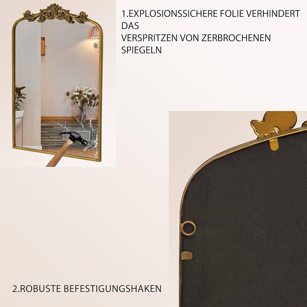 SUITABLE FOR MULTIPLE PLACES This antique design is suitable for any home style and different places, it can be used as hallway mirror, bathroom mirror, living room mirror, desk mirror, living room mirror and make a statement on any wall. Our packaging has passed a rigorous professional drop test which ensures the mirror is in perfect condition during transportation.