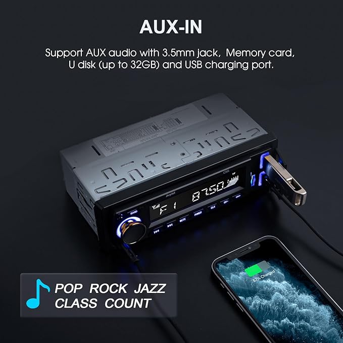 - 🐕【Audio Formats】This car stereo radio supports MP3/FM/SD/AUX/dual USB function. It can play music stored on an SD card with a maximum capacity of 32 GB. The radio receiver also has an equalizer that allows you to choose between 3 presets: Pop, Rock, or Classic and experience HIFI stereo surround sound.