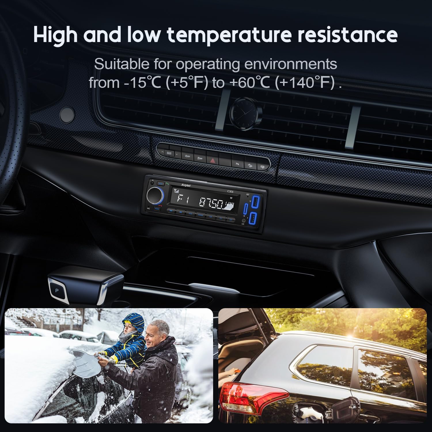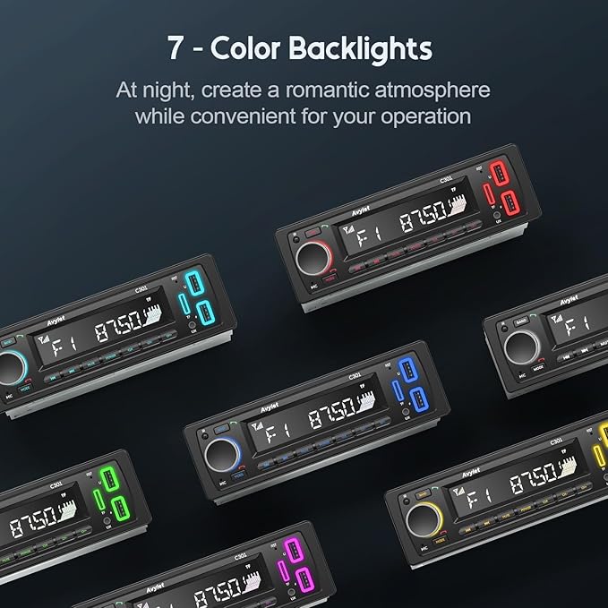 - 🐎【7-Color Backlights & LCD Display】This elegant design features 7 backlight colors, allowing you to customize the presentation of the backlight to your preference. The backlight is convenient for viewing the time in a dark car at night. The LCD screen has an SD card slot, AUX input function, and audio output that can be connected to your personal audio device.