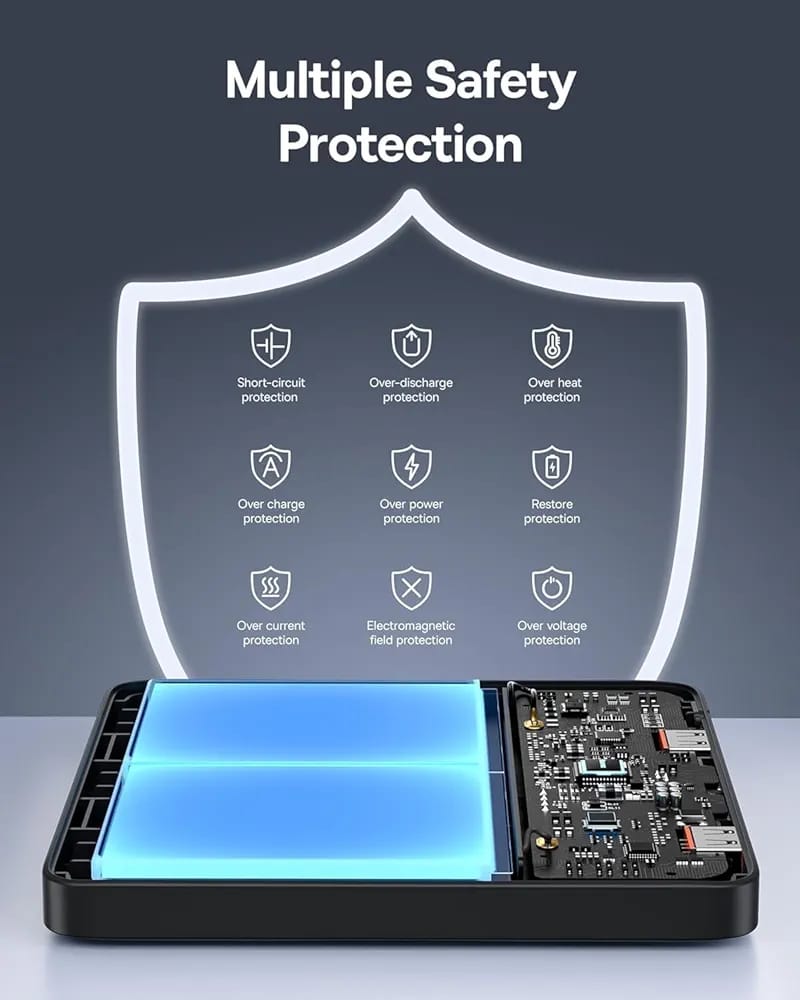 Quick and safe: the 20000 mAh USB-C battery pack from Baseus can charge the iPhone 16 Pro to 100% when the battery is empty and charge it up to 3.4 times. It can charge the Galaxy S20 2.4 times and charge the MacBook Pro 14 inch 0.88 times. It is ideal for business trips and travel and an ideal gift choice. The built-in chip uses BPSⅡ (Baseus Power Split) technology to protect you and your devices from overheating, short circuit and over-discharge.