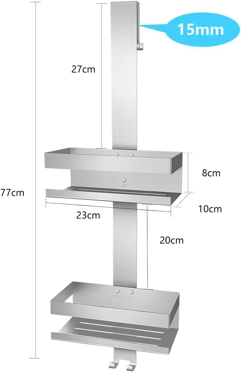 - HANG OVER SHOWER – Shower caddy for hanging hook width is widened to be compatible with more sizes of shower doors. Suitable for shower doors up to 35mm thick. Please measure before ordering to make sure the bracket fits your shower door.