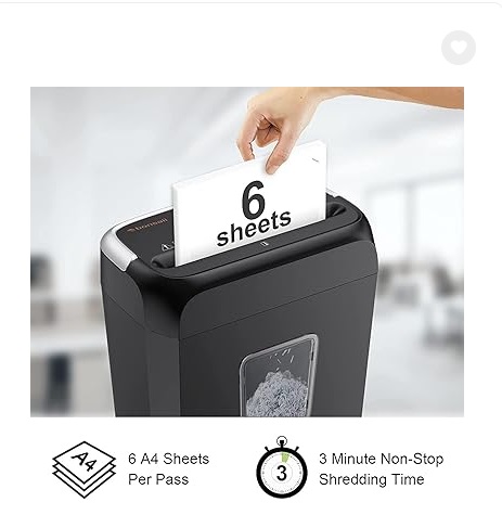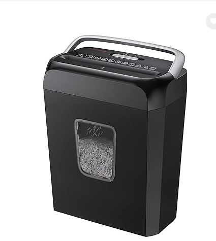 - 【Cross Cut & Credit Card Paper Shredder】The cross cut shredder shreds paper into 5x14mm particles, achieving P-4 level security. Shreds up to 6 sheets at once without removing staples, also handling paper clips and credit card (one at a time)
