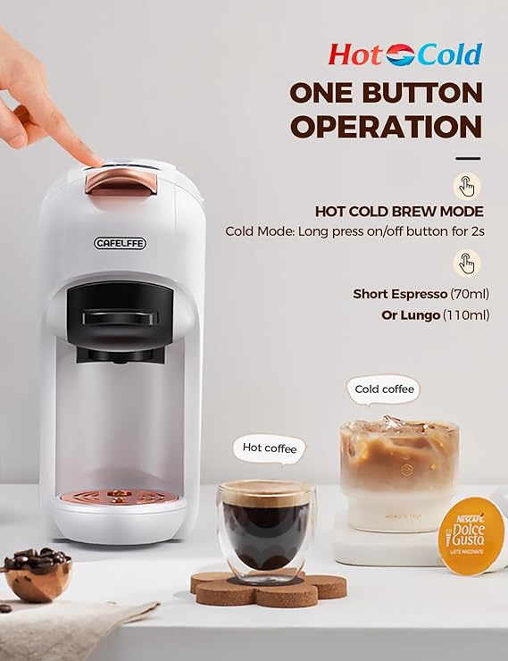 - 【Cold/Hot Extraction Mode】CAFELFFE Espresso pod machine has cold or hot modes so that you can make iced coffee in the summer, and make hot coffee in winter. (HOT Mode requires about 35 seconds preheating).