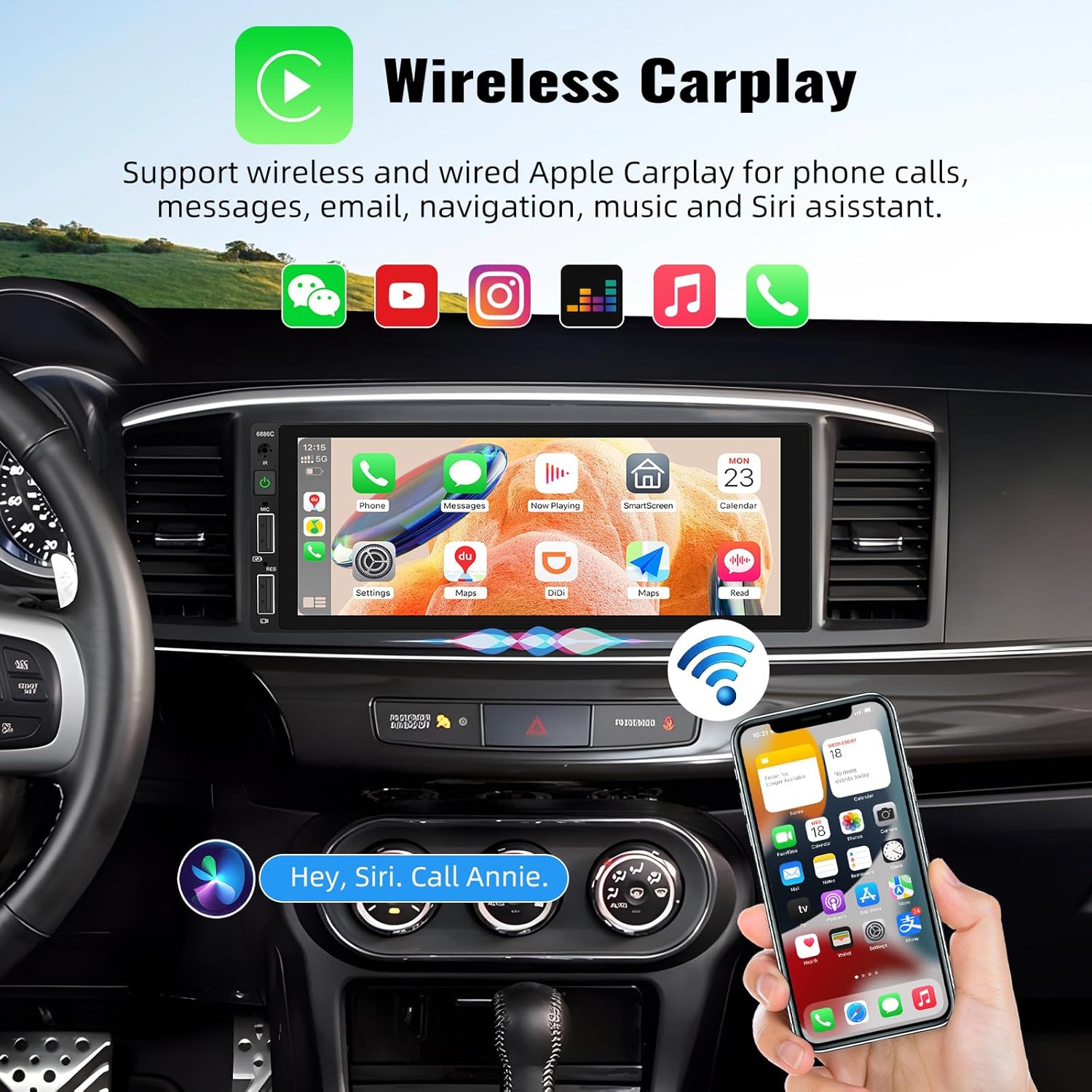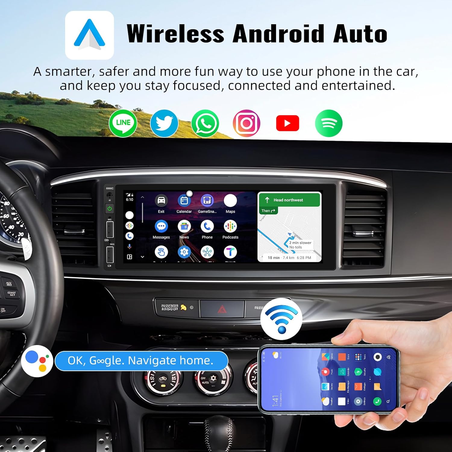 Wireless Apple Carplay & Android Auto for navigation, calls, music, and notifications