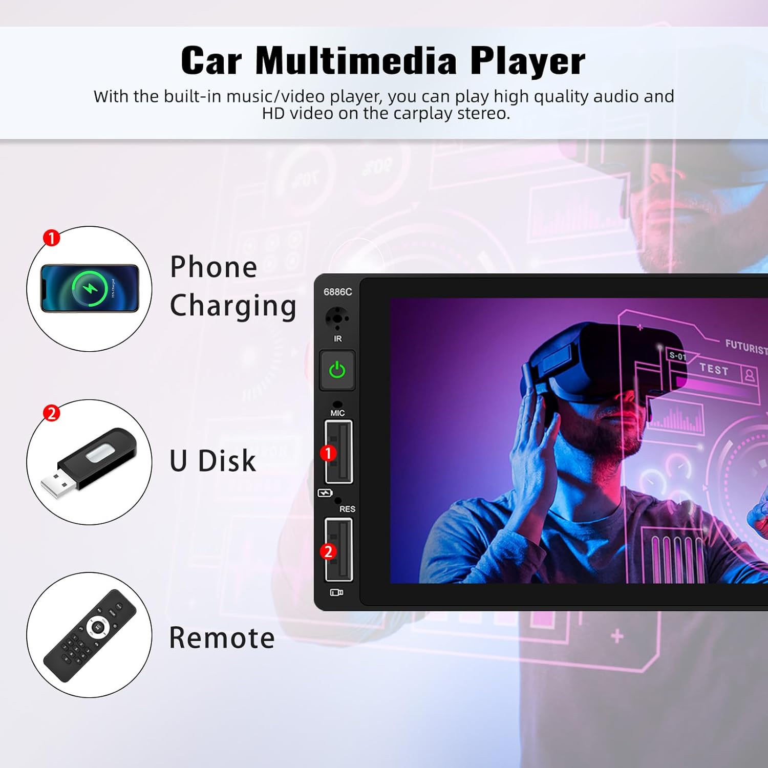 6.86 inch HD capacitive touchscreen with 8 EQ presets and 7 color LED buttons