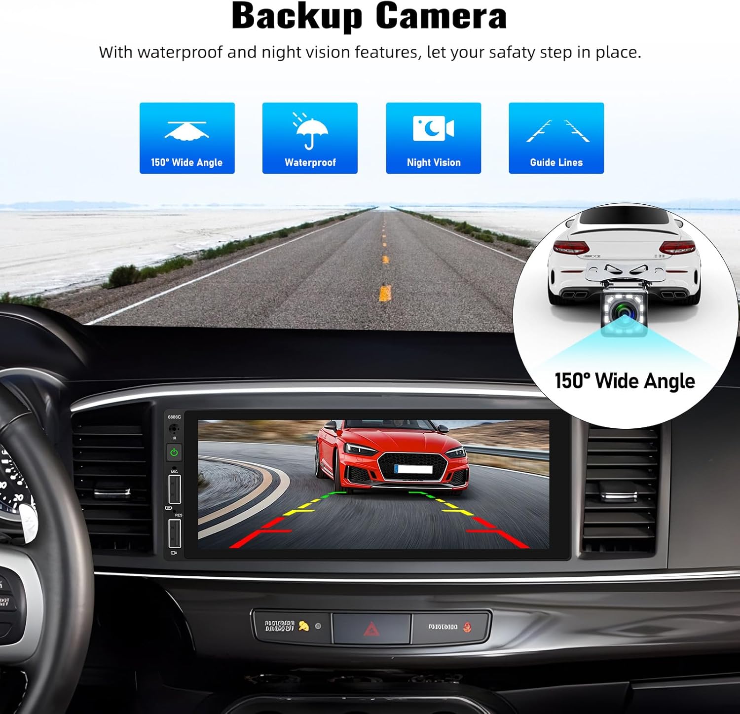 Includes 12-LED Waterproof reverse camera for clear night vision and wide viewing angle