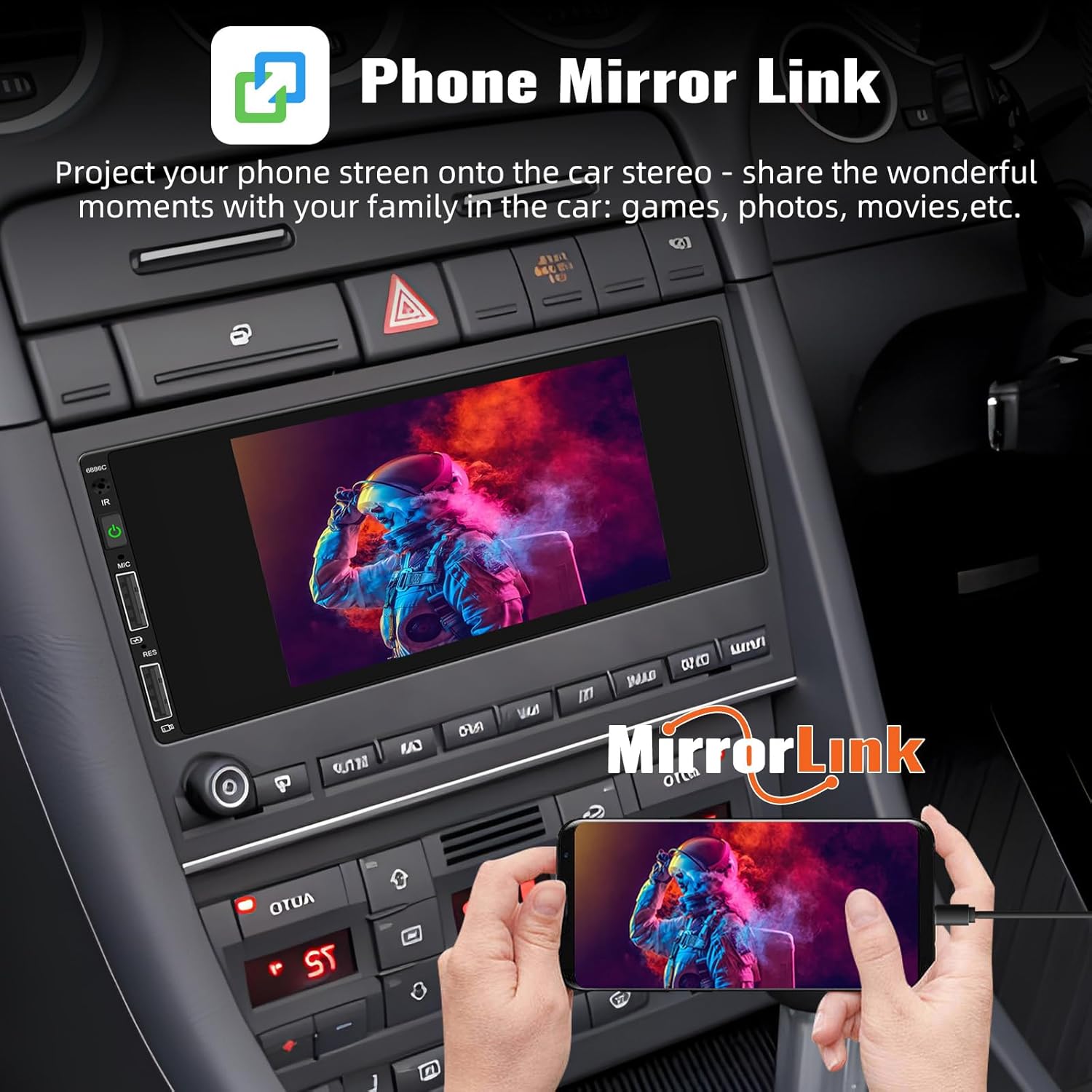 Phone Mirror-Link for Android/iOS to share content on the car radio touchscreen