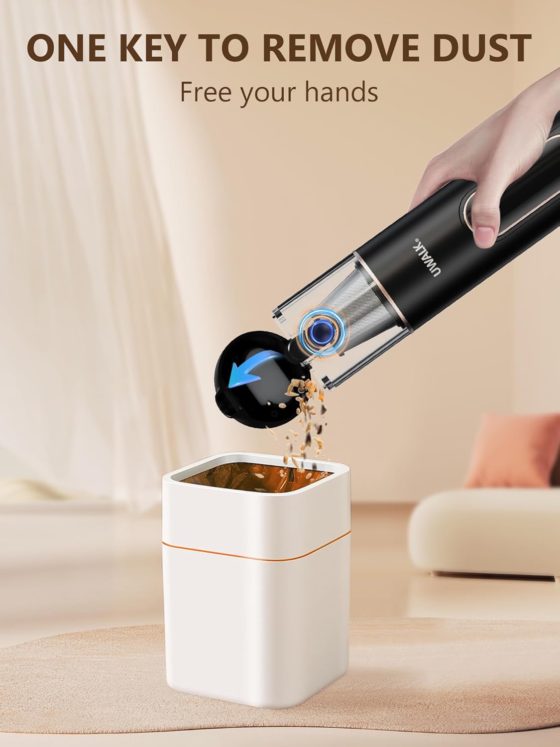 • ONE KEY TO REMOVE DUST: Adopt one-click dust dumping design, when dumping dust, slide down to unlock and simply press the button, the lid automatically pops open to avoid secondary pollution, convenient and without getting your hands dirty. Key lock design prevents accidental opening of the cup cover. Comes with three high-density filters that can be removed, cleaned and reused. Rinse and air dry before placing in the dust cover.