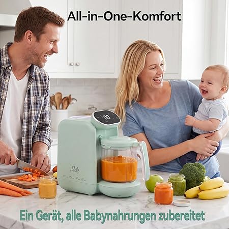 - Versatile baby food preparer: this baby porridge maker combines steaming, mixing, milk warming, sterilising, cleaning and a low water warning function. It is suitable for making purees from fruit, vegetables and meat as well as for defrosting food. This design eliminates the need for multiple kitchen appliances and reduces cleaning effort, allowing mothers to prepare baby food efficiently. It includes a German instruction manual.