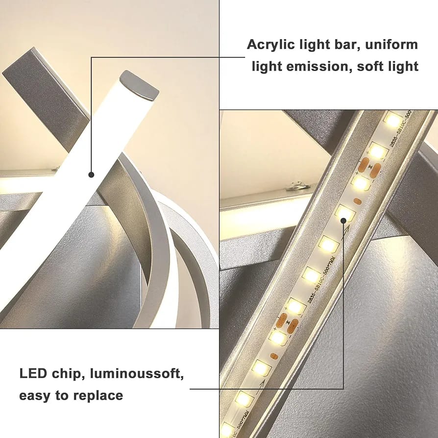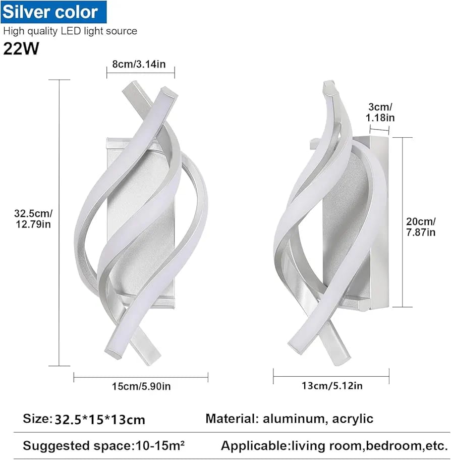 ⭐ Specifications of the wall lights indoor: Size: 33*15*20 cm.Power: 22W. equivalent to 220W incandescent lamp. Lumen: 2500LM.Color temperature: 4500K natural white light. Lighting area: 8-12 m². Material: acrylic + aluminum. Color: silver. Weight: 750g