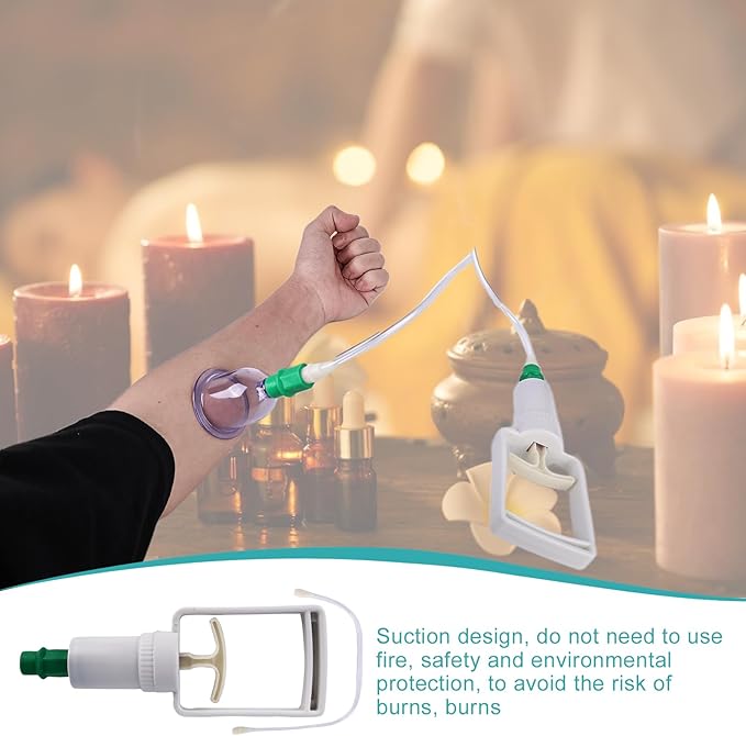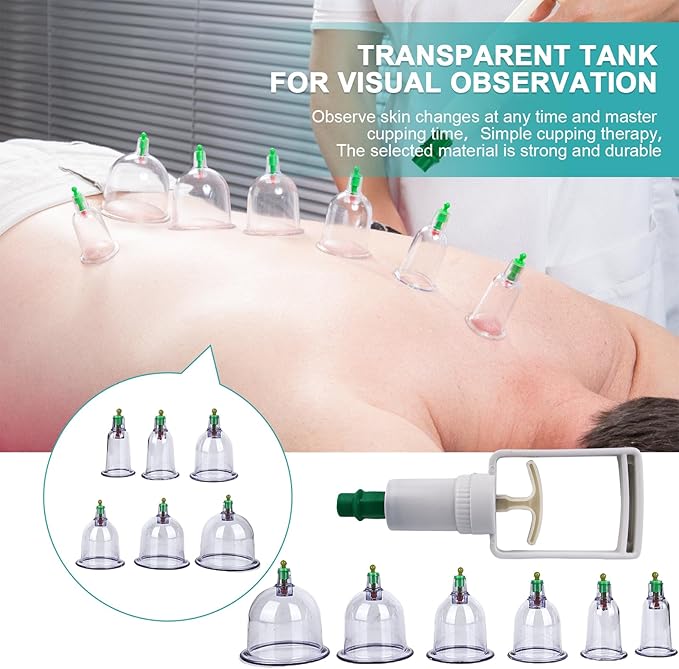 - Easy to use: cupping glasses transparent body, easy to use pressure relief valves and adjust pressure, inner treatment is clearly visible. The glass is connected to a vacuum air gun and can be operated immediately by one person, which is convenient. Ancient Chinese massage, no open flame is required to avoid skin burns caused by improper operation, safe and reliable.