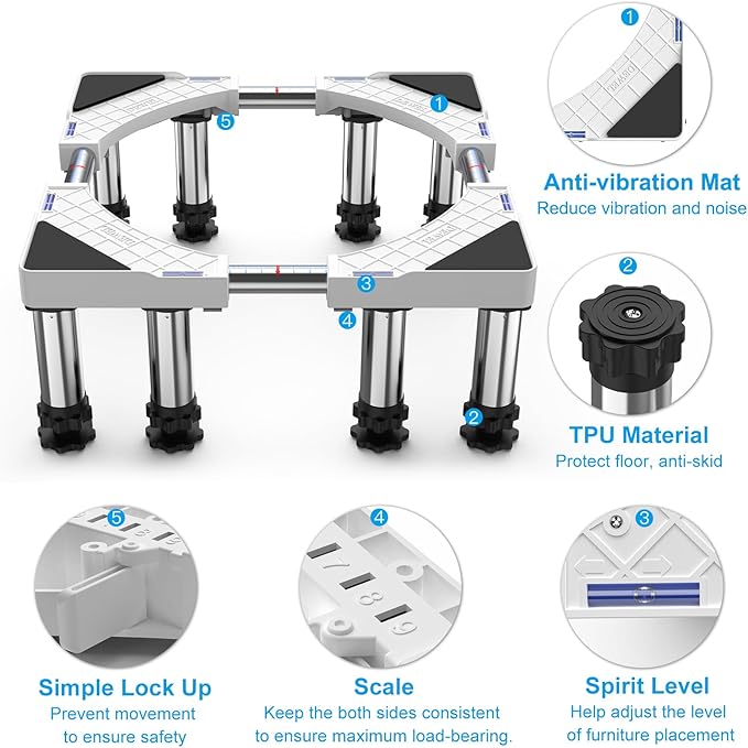 - Vibration and Anti-Slip Pads: Reduce the vibration and noise of the washing machine with specially designed anti-slip noise protection pads, which will not disturb your family and sleep even when the washing machine is working at night. No need to worry about pets and children at home
