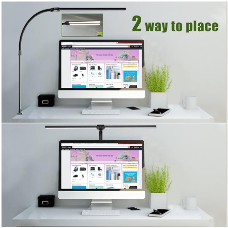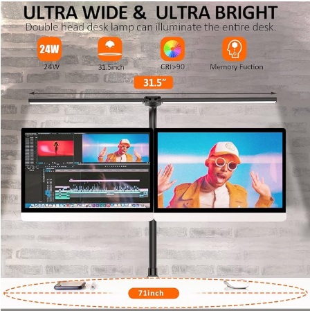 • 【Super Wide, Large and Bright】 This 24W LED desk lamp has a double head design that allows you to adjust the angle of the light bar. It can extend to 31.5 inches and fully illuminates the table. Suitable for multi-monitor workstation, home office, large desk, study, architect, computer, drawing, sewing, crafts, painting, reading, gaming, piano. Height up to 32.7 inches. The best LED desk lamp for working from home