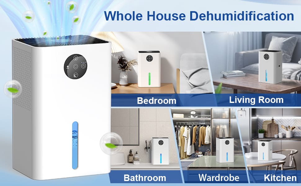 Portable compact dehumidifier — a small room / home dehumidifier designed for bedrooms, bathrooms, closets, basements, etc.
