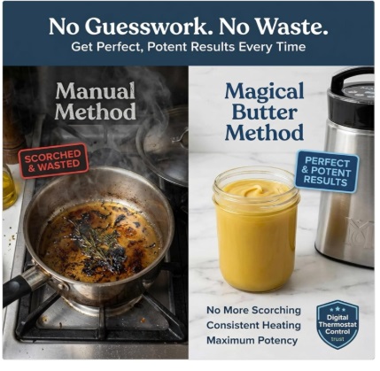 - Hands-Free Infusion – The MB2E Magical Butter Machine automates the process of making infused oils, butters, tinctures, and more.