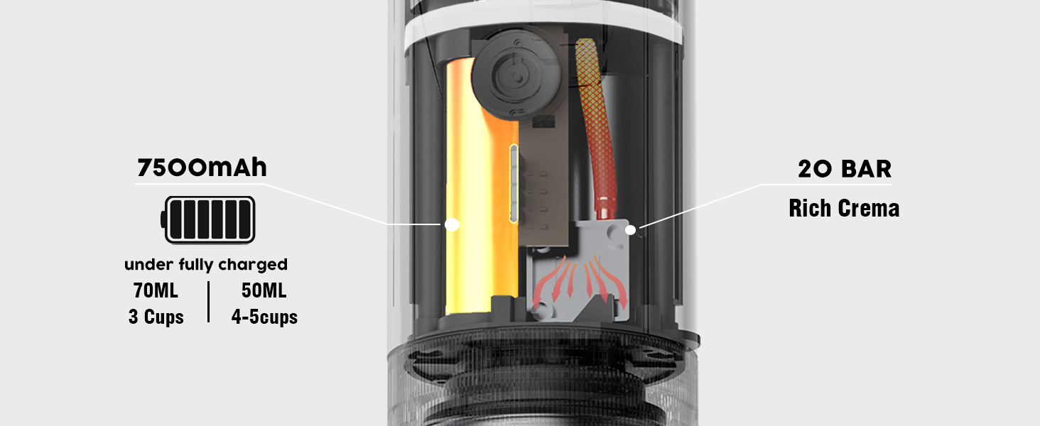 - ⚽【Portable Coffee Maker for Travel】 – This wireless heating outdoor portable Espresso maker is designed for convenience on the go. With a 7500mAh battery, it can be fully charged in just 120 minutes and supports 3-4 times of use in heating mode or over 200 times of use in room temperature extraction mode. The Type-C super fast charging technology allows you to charge up to 70% of the battery in just 70 minutes.