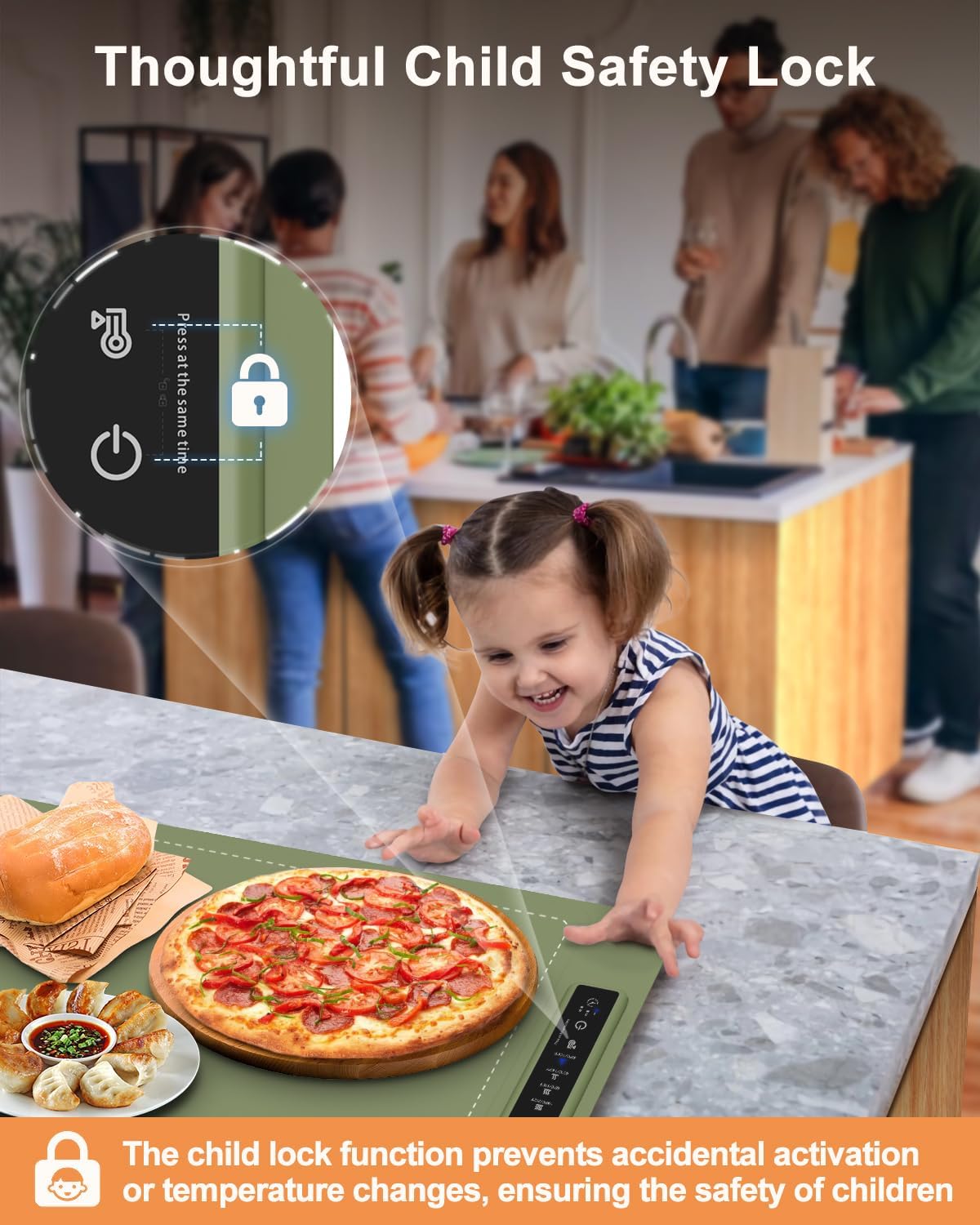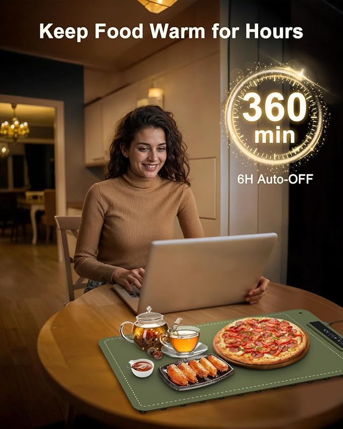 - Auto Shut-Off & Timer Function: With a 6-hour auto shut-off feature for extra security, this warming mat also includes 1H/ 3H/ 5H timer options. Busy families can preset the mat and enjoy warm meals worry-free, knowing the mat will turn off when needed.