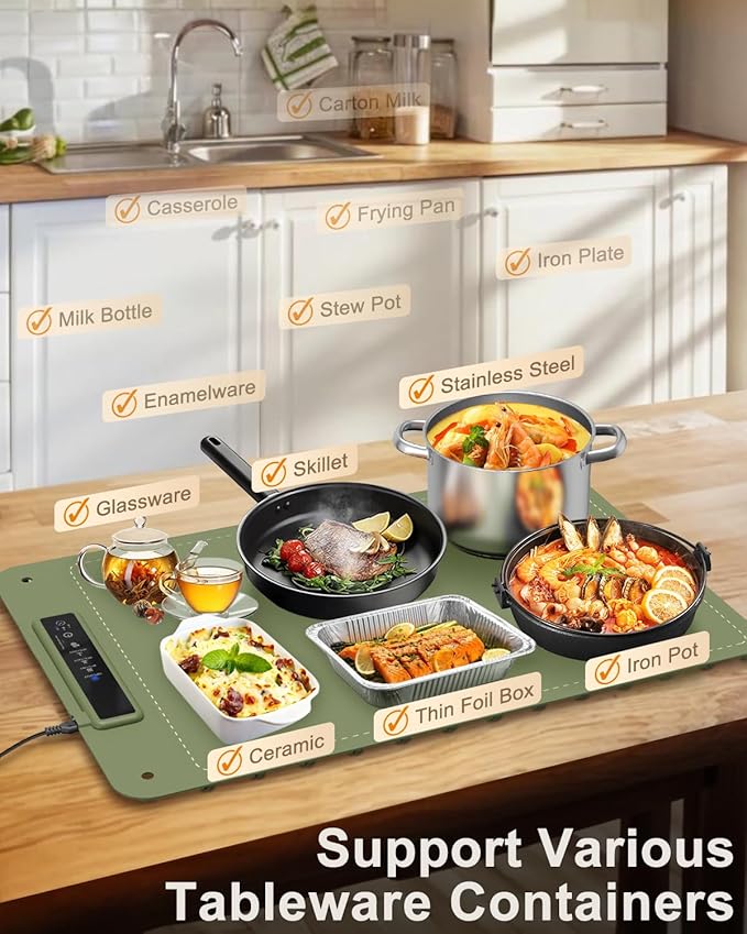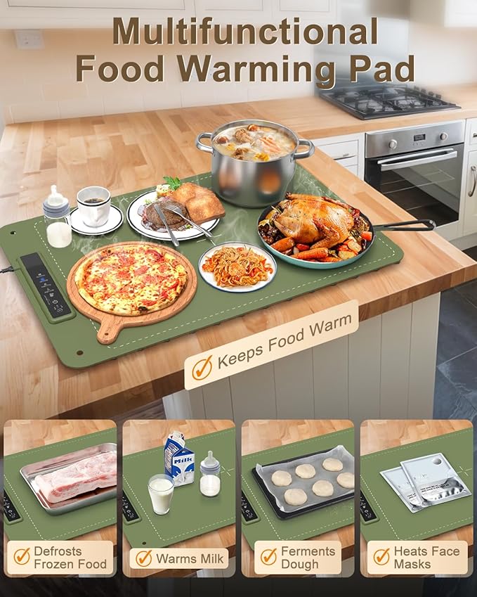 - Versatile & Multi-Purpose Design: This isn’t just a food warming mat—it’s a multifunctional kitchen tool perfect for proofing dough, warming baby bottles, or defrosting frozen foods, making it an essential for any busy household. Ideal for backyard parties, football Sundays, or open-house gatherings, this mat provides consistent warmth, letting you and your guests enjoy long, leisurely meals with food kept at the perfect temperature.