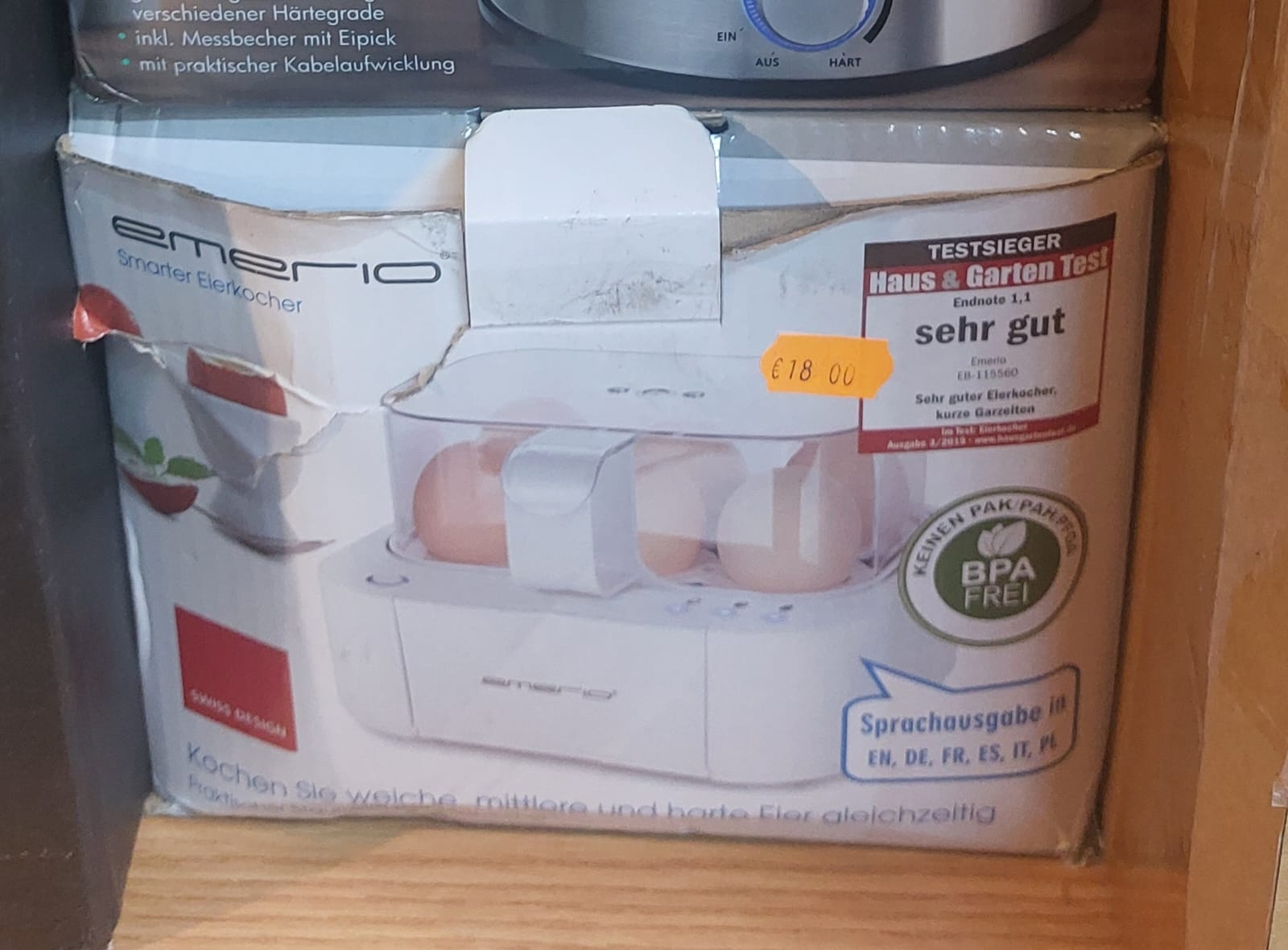 • A measuring cup with an integrated egg piercer is included and can be stored in the device