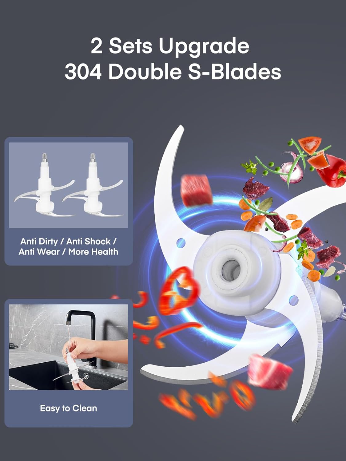 【Make an Exhausting Job a Breeze】Still struggling about daily handling of onions or meats? Just an electric food chopper is all you need to make cooking fun. The chops, mixes, blends, whips, grinds, and more, all with a simple push to start. Powerful Meat Grinder Easy to clean with removable blades.
