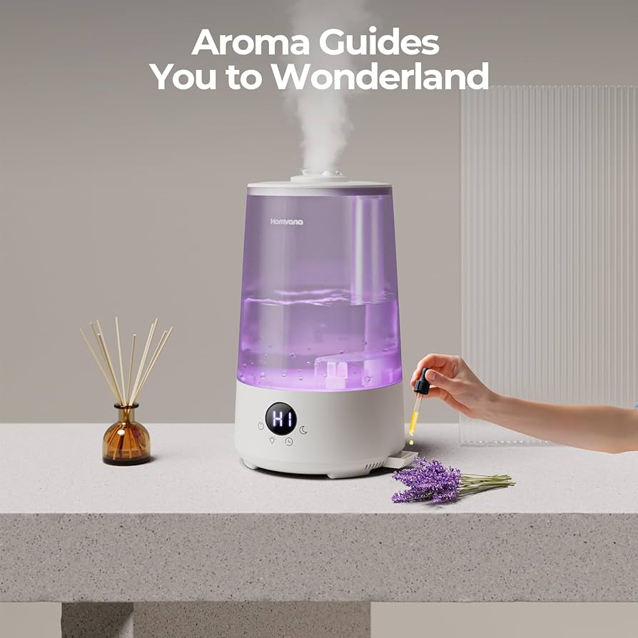 [3-in-1 Humidifier Meets All You Expect] Cool Mist Humidifier + Aromatherapy + Mood Light, purchase for once to satisfy all you expect! Let Homvana H101 be the best companion in your bedroom.