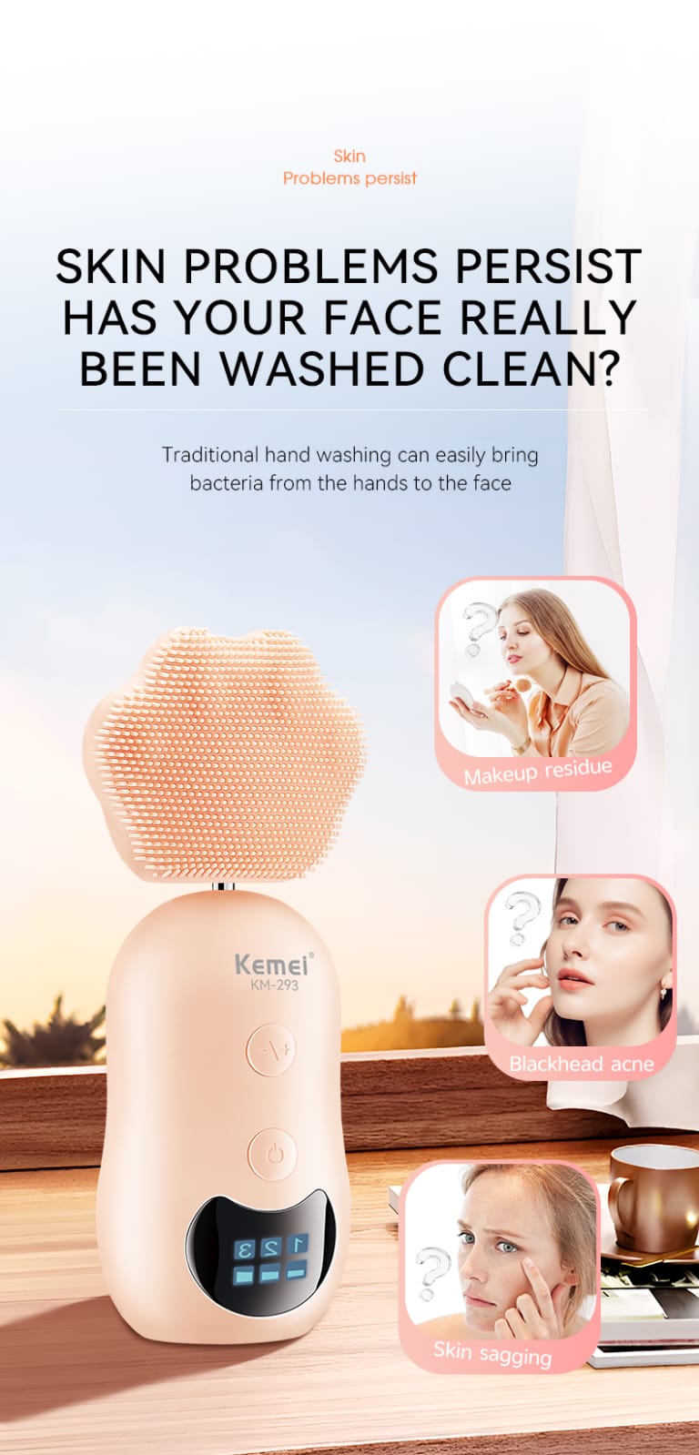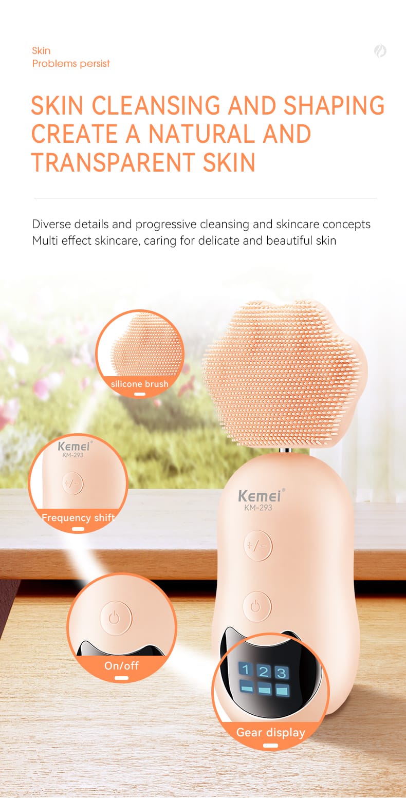 KEMEI Professional Electric Facial Cleansing Brush Km-293 Cleaning Massage 2 In 1 Facial Cleaner Face Clean Brush Rechargeable