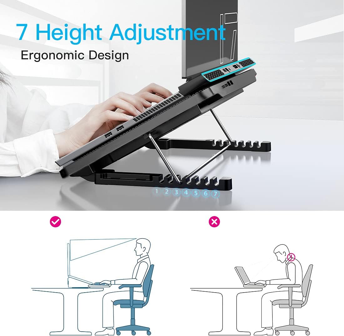 - 【Unique 7 Height Adjustable & Phone Holder Design】 The cooling pad have 7 height for you select, free adjust suit different laptop. Unique phone holder stored on the left side of the laptop cooler base, can conveniently put your phone or tablet in cooling pad left or right to view information easily