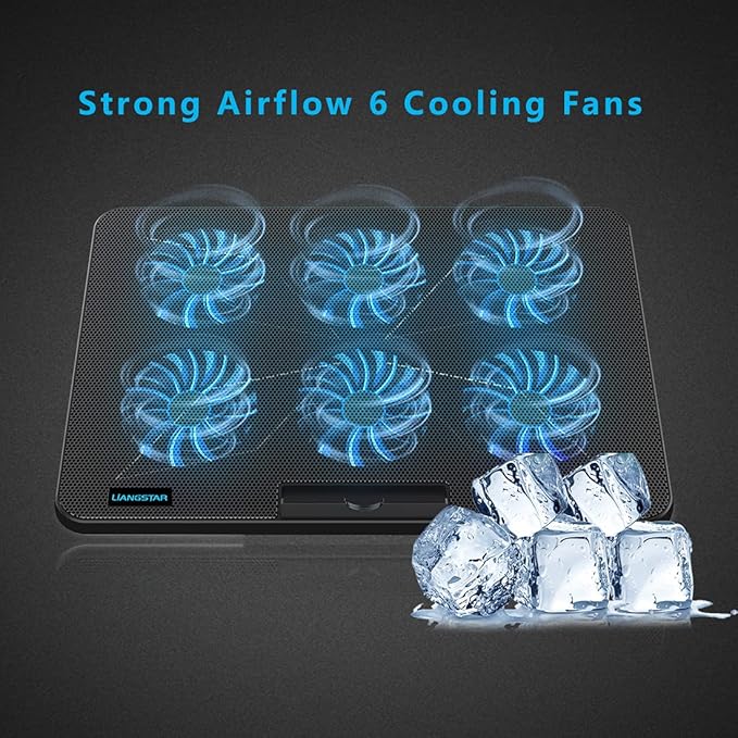- 【6 Ultra Quiet Fan & Adjust Fan Wind Speed】This special laptop cooler with 6 ultra quiet fans. Our laptop cooling pad 6 fans can work together, or 3 fans run separately, two separate switch control fan speed from 0 to max freely