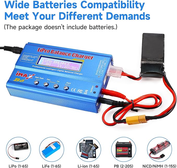- 【Multiple functions】: More than a regular digital balance charger, B6 comes with features like Li-ion and LiPO balancing, fast charging, data storage, cyclic charging, discharging, and much more for all of your battery packs.