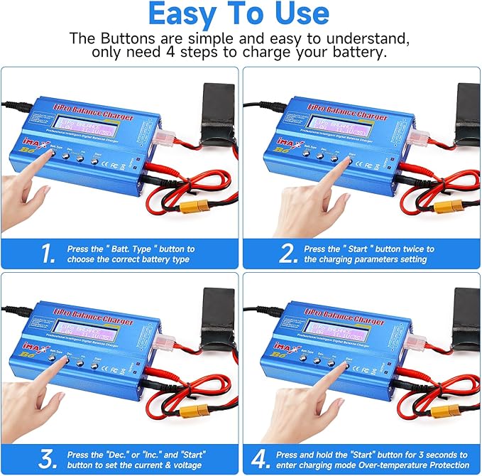 - 【High-quality & Safety】: The lipo charger is made of high-quality chips and materials to provide you high-quality products and function performance, and the charger also has short-circuit protection, overcharge protection, overcurrent protection and overheat protection for safety design.it is very safe to buy.