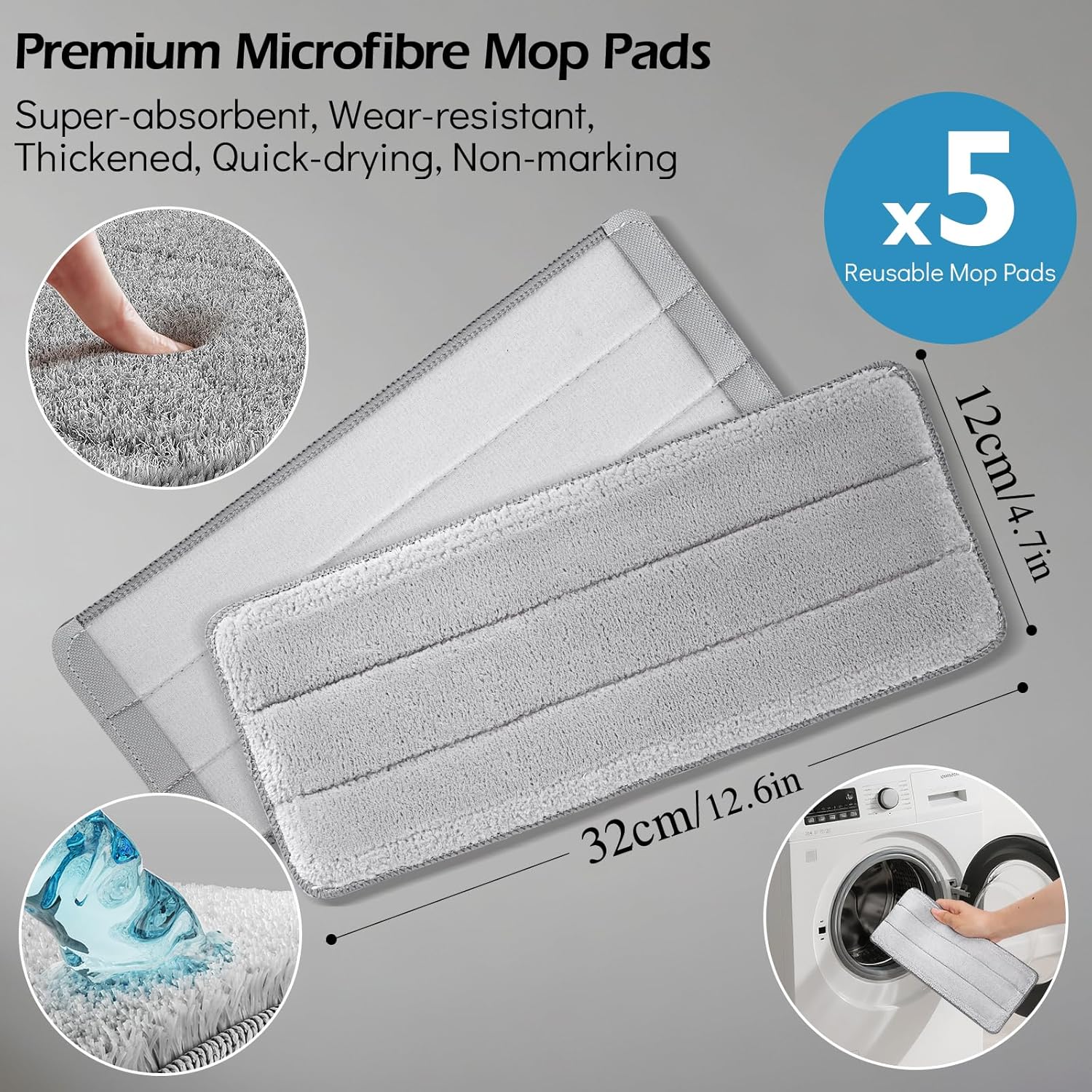 • 5 Ultra-Absorbent Microfibre Pads:Includes 5 reusable&quick-dry replacement pads. Millions of densely packed microfibre strands effectively trap and remove dust, pet hair, liquid spills, and stubborn grime from smooth surfaces. Durable, odour-free, machine-washable, and resistant to deformation over time – exceptional value for money. It is recommended to replace the pads every 1-2 months depending on usage frequency. If need, you may select ASIN: B0C4TJH4WJ