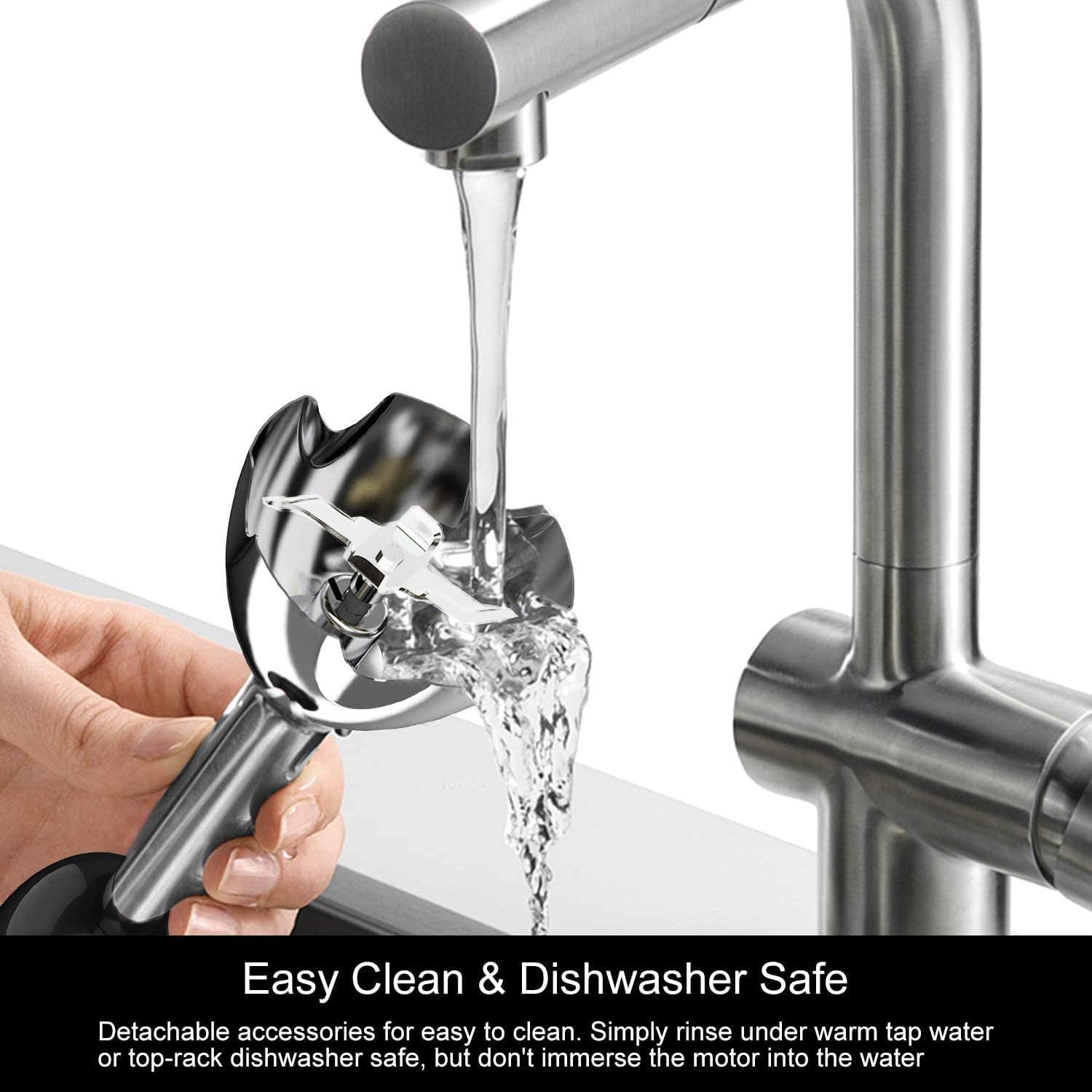 - Ergonomic Design + Easy to Clean : The ergonomic handle gives a non-slip and comfortable grip when continuously blending ingredients. All attachments (excluding the motor part) are detachable, easy to clean, attachments dishwasher safe (without the main machine header) and BPA free. This blender is fully certified.