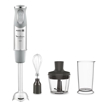 High power, minimal effort. Quickchef 3-in-1 Moulinex DD655D10 With the Moulinex Quickchef blender you will enjoy optimal power without any effort. Easily prepare a variety of dishes in an instant thanks to the high-performance 1000W motor, and always stay in control with ten speeds that can be adjusted with an intuitive and easy-to-use selector without stopping the mixer. In addition, the splash guard and non-slip handle provide comfort during use. Quickchef high performance blender Power: 1000 W. Splash protection. Variable speed with intuitive backlight and selector. Soft, non-slip handle. Measuring cup: 800 ml. 500ml chopper Whisk High performance thanks to its high-performance 1000 W motor, you can easily beat and prepare a variety of dishes easily and quickly. Splash-proof. Provides all the comfort needed for cooking. Intuitive variable speeds. Adjust the speed without stopping the blender via an easy-to-use backlit selector. Non-slip soft handle. Ergonomic design, for better control even with wet hands. Powelix Technology: 4 large blades for smoother, faster mixing and results.