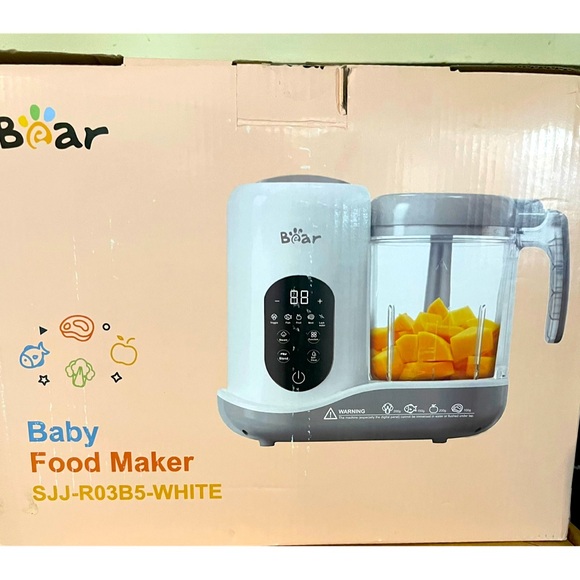 NWT Bear Baby Food Maker with digital display. Features a sleek white and gray design. One step food processor. Built in menu to pre-set for vegetables, fruit, fish or meats. Just choose a function and the steamer & blender will do the rest. No plastic basket required, and no additional equipment needed. Seals inflavors & nutrients to give your baby the best start in life! I bought this for my great granddaughter before she was born. I had hopes of making her highly nutritious, organic foods, but her mom (my granddaughter) had other plans, so it never got used. I’m also listing a set of 12 jars to be sold in a separate listing.