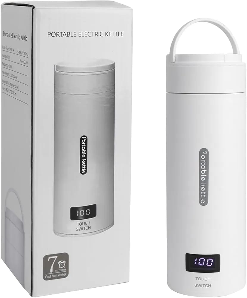 Rapid Boiling, Get Hot Water in Short Time==Portable kettle for travel is compatible with 120V and can boil water in about 7 minutes.When the desired temperature is reached, the travel kettle will automatically turn off, allowing you to drink hot water in a short time. Portable water heater is also equipped with boil dry protection to ensure a safe and worry-free boiling water experience.