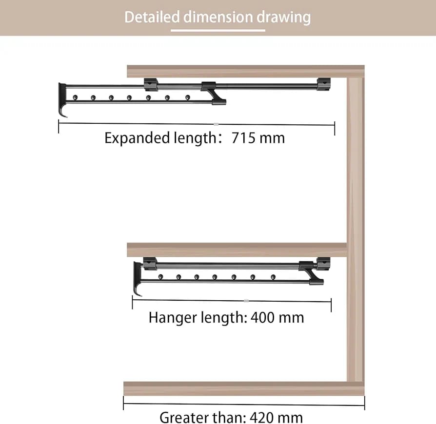 Clear division: telescopic clothes rails have a separating section that helps fix the clothes in place, protect them from falling or sagging, and make clothes more distinctive.