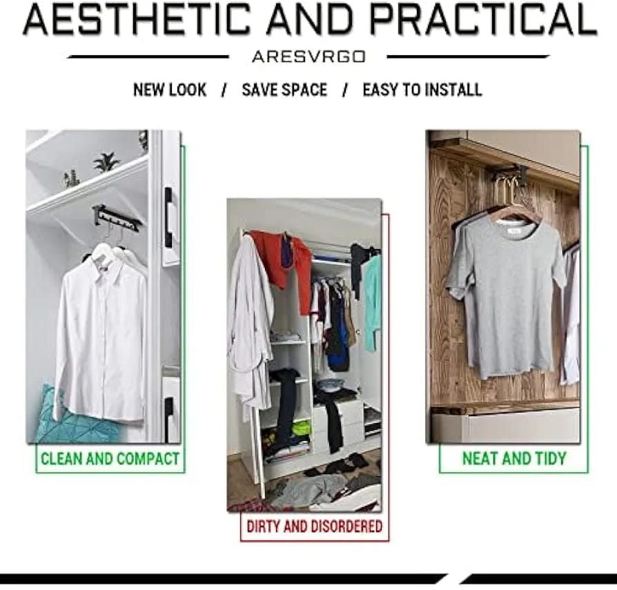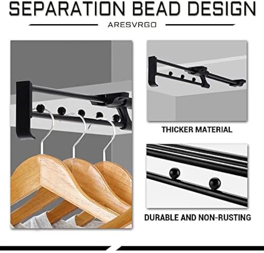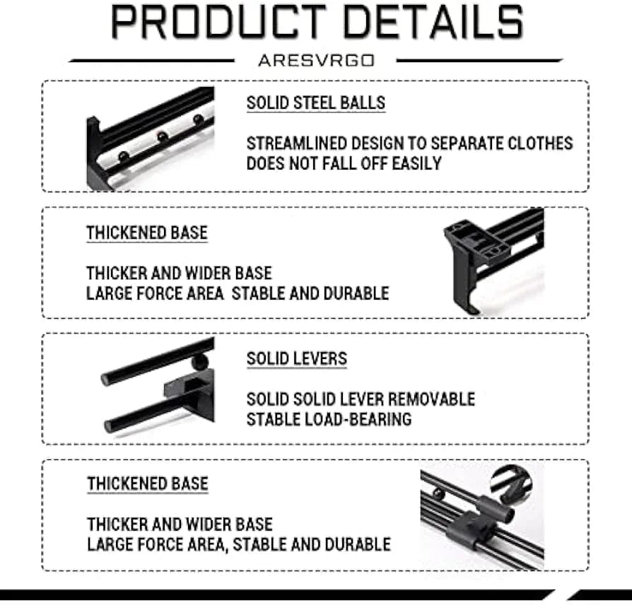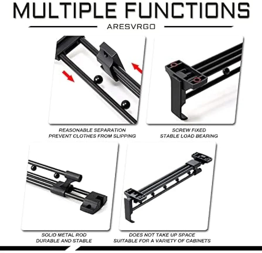 Easy installation: the clothes rail is very easy to install, simply attach the hooks horizontally to the cabinet with 4 screws. The hanging pins are made of durable and sturdy steel tube. The black color is very elegant, it is the best choice for your home.