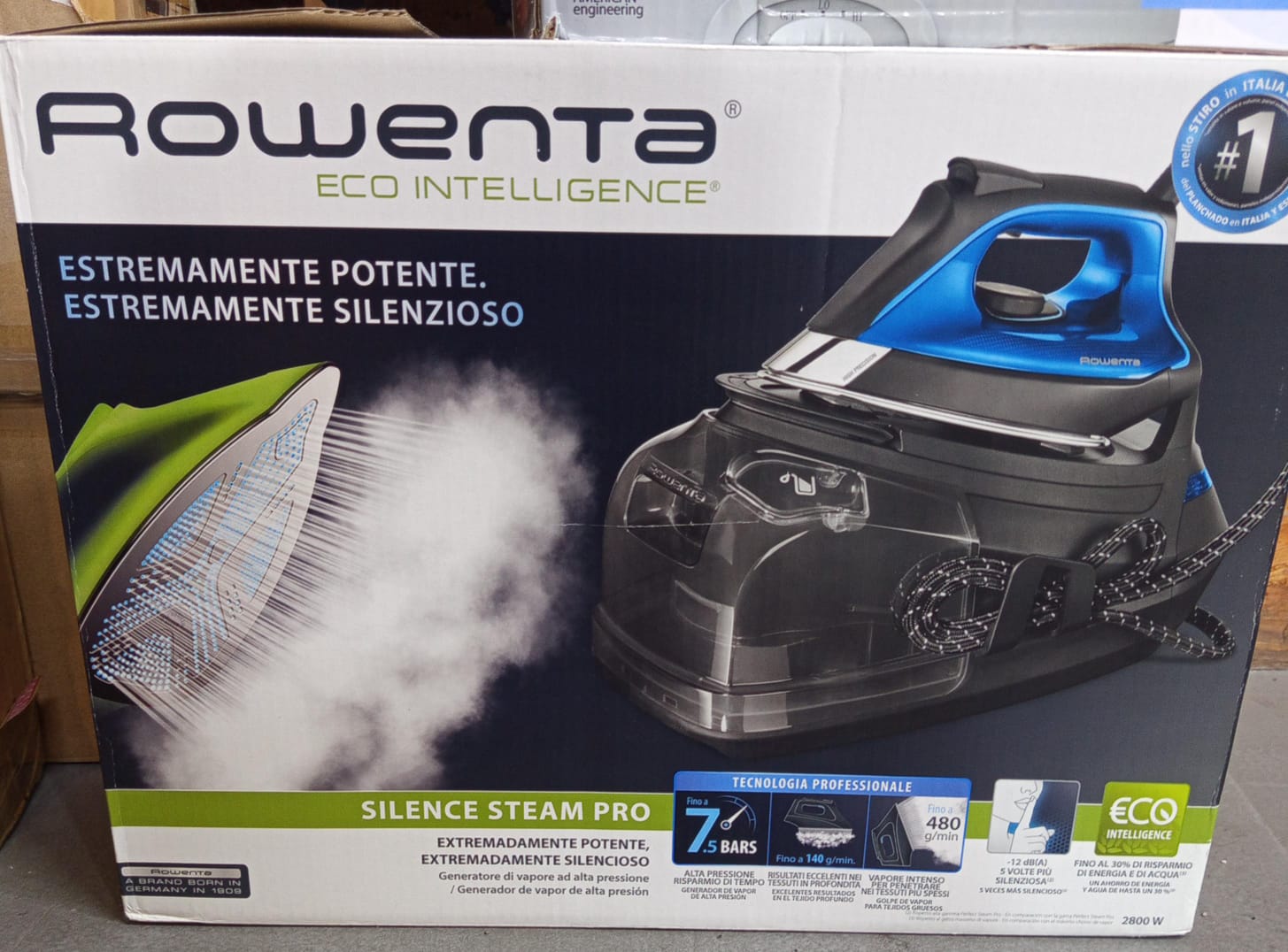 Steam generator with 7.5 bar pressure, 480 g/min steam stroke and steam output of 140 g/min, will remove even the most stubborn creases to iron the toughest fabrics