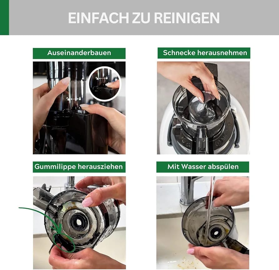 Vitamin-friendly – Thanks to the slow rotating movement, vitamins and nutrients are optimally preserved, as less heat and oxidation are produced, which leads to healthier and more nutrient-rich juices.