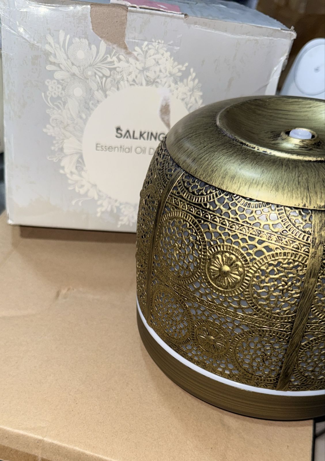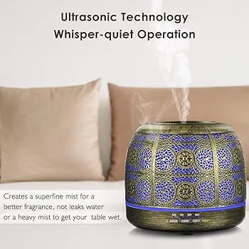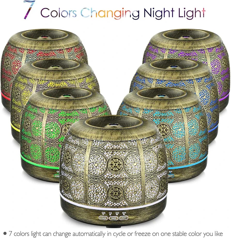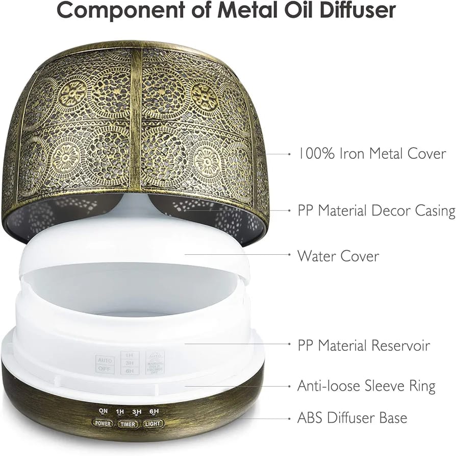 * Elegant Metal Artwork – Tired Of Looking At Cheap Plastic And Fake Wood Diffuser? SALKING Essential oils diffuser with a iron design,the metal material can protect aroma diffuser from corrosion by essential oils and extend its service life. The wiredrawing wrought iron lampshade with its classic hollowed-out pattern perfectly matches British-style decor.