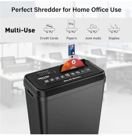 * Security Level P-2: A home office paper shredder that shreds paper clips, paper clips and credit cards (one at a time), receipts, bills and important documents. Maximize the security of your personal information.