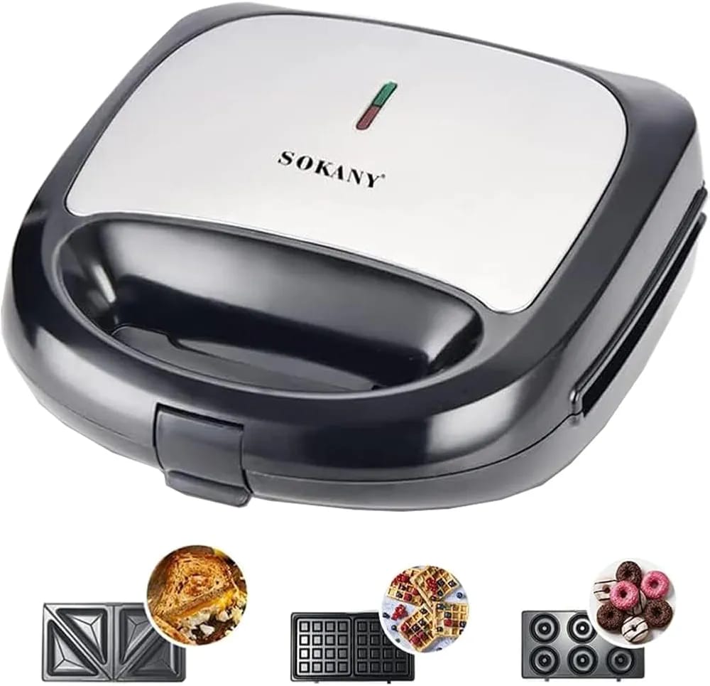 * Best for Breakfast: SOKANY Sandwich Maker with 3 removable plates is great for sandwiches, waffles, doughnut, and more delicious dishes.