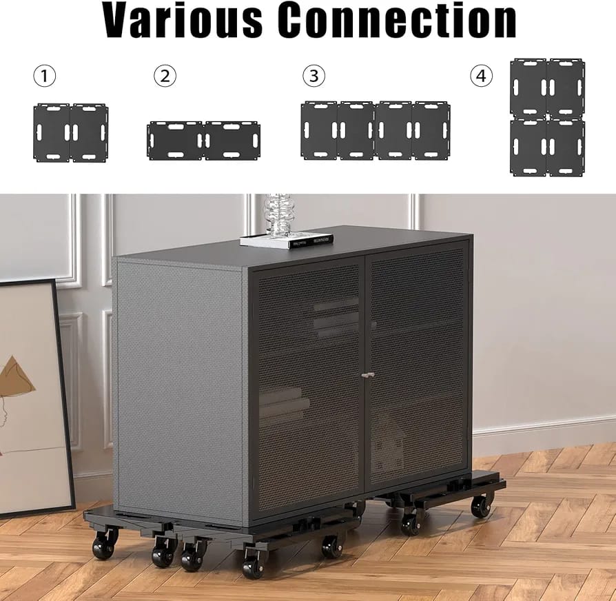 【Innovative Interlocking Furniture Dolly】: This furniture dolly 4 wheels heavy duty features a unique interlocking design, allowing you to connect two or more flat dolly carts horizontally or vertically with ease–no tools required! Great for moving large items like sofas, refrigerators, or heavy furniture